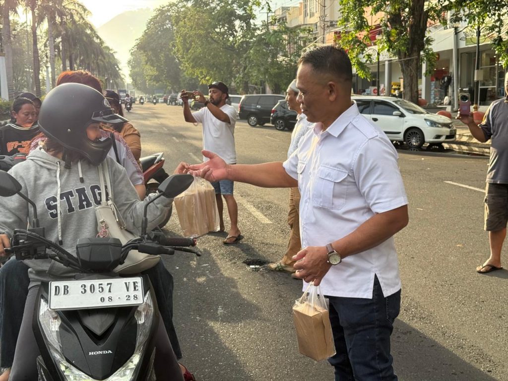 Aksi sosial tersebut digelar di ruas Jalan Sam Ratulangi, tepatnya di depan Kantor Wali Kota Bitung. Ratusan paket takjil dibagikan kepada para pengguna jalan, baik pengendara roda dua maupun roda empat, yang melintas menjelang waktu berbuka puasa.