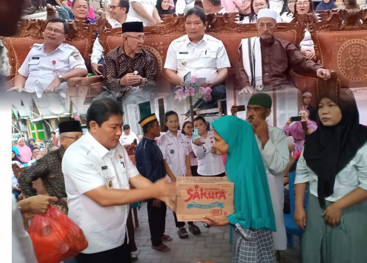 Usai sambutan Bupati, dilanjutkan dengan buka puasa bersama kemudian penyerahan bantuan sosial berupa sembako kepada kaum duafa, lansia dan penyandang disabilitas.