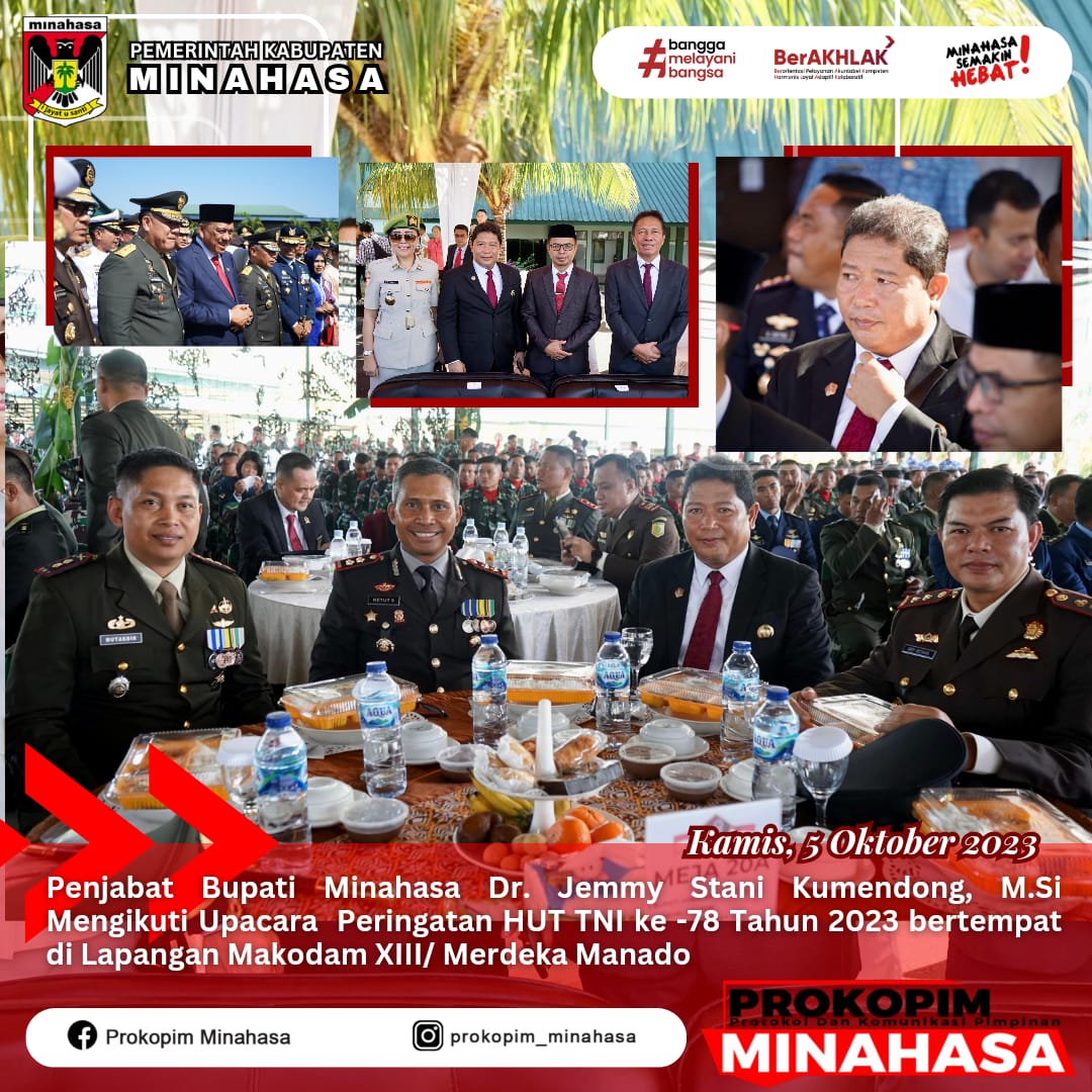 MINAHASA, inforakyatnews. com – Penjabat Bupati Minahasa Dr. Jemmy Stany Kumendong, M.Si Mengikuti Upacara Peringatan HUT ke -78 TNI Tahun 2023, bertempat di Lapangan Makodam XIII/...
