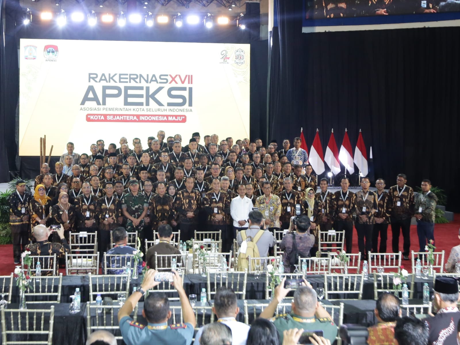 Presiden Republik Indonesia Joko Widodo membuka secara langsung Rakernas XVII Apeksi 2024 yang dilaksanakan di BSCC Dome Balikpapan, Selasa 4 Juni 2024.