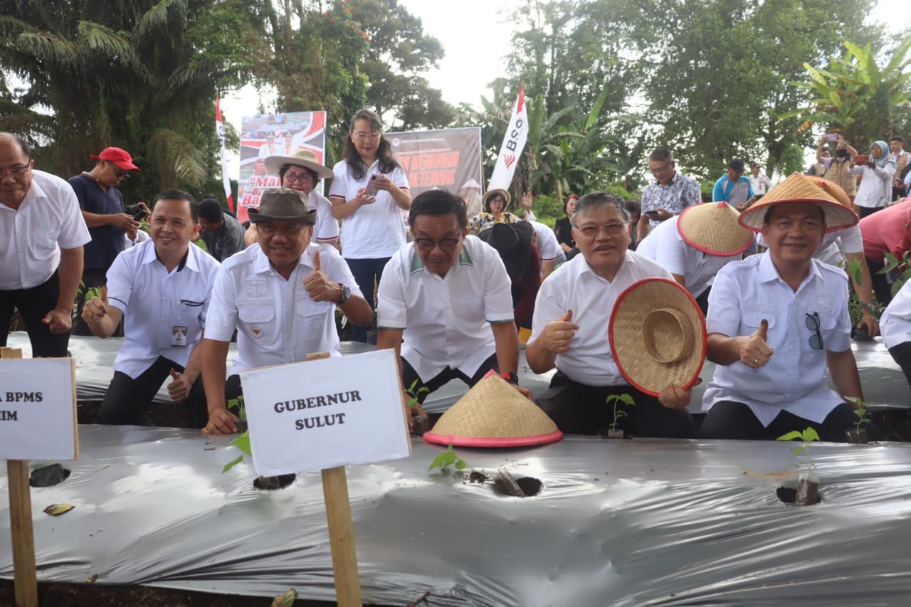 Pada kesempatan ini Gubernur Sulawesi Utara menyerahkan bantuan bibit dan pupuk kepada para kelompok tani