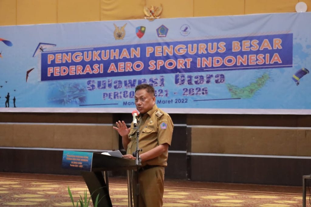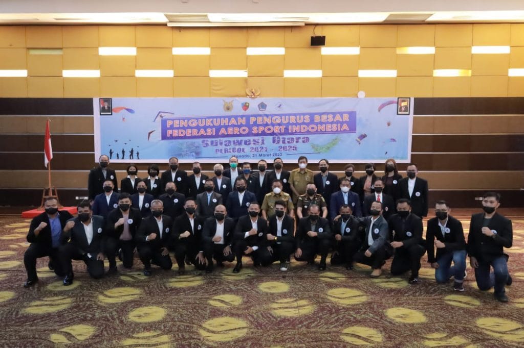 Gubernur Sulawesi Utara Olly Dondokambey SE dalam sambutannya berharap pengurus yang dilantik saat ini untuk terus bersama dengan pemerintah dalam meningkatakan semangat olahraga dirgantara di Sulawesi Utara.