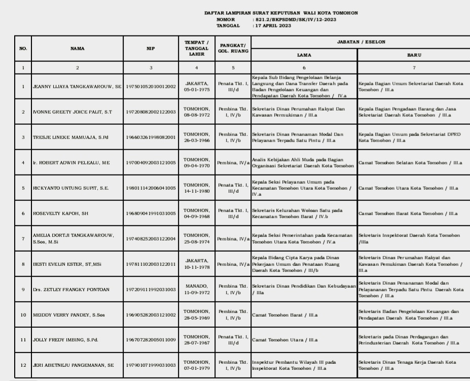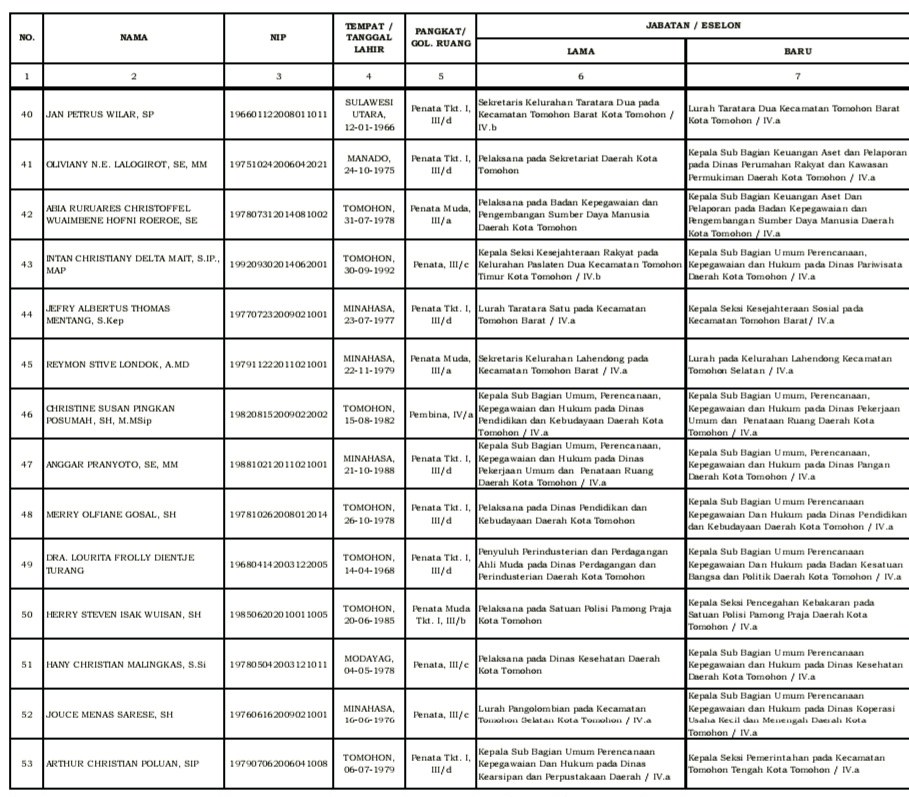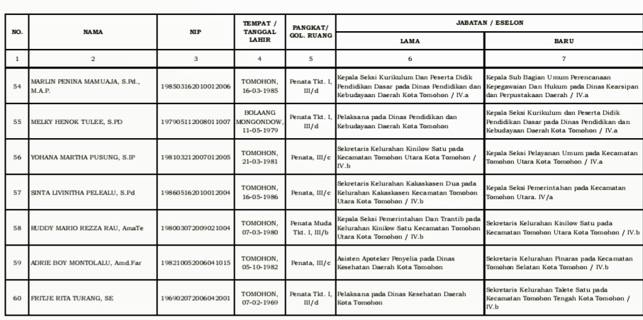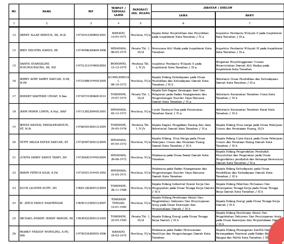 Diketahui Walikota Tomohon melantik 38 pejabat eselon tiga dan 22 pejabat eselon empat.