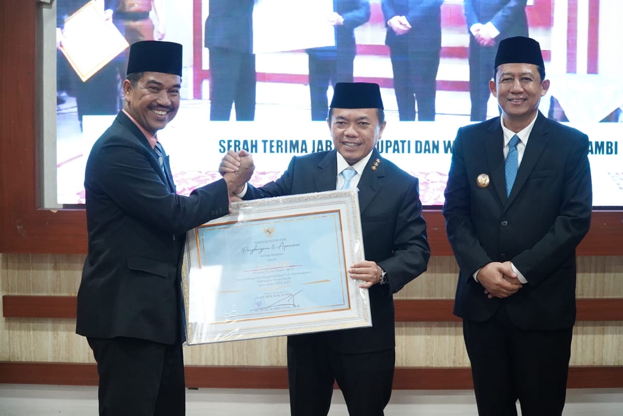 Hal tersebut disampaikannya saat menghadiri Serah Terima Jabatan (Sertijab) Bupati Muaro Jambi terpilih, hasil pemilihan Kepala Daerah (Pilkada) 2024 Masa Jabatan 2025-2030, Bupati Muaro Jambi Bambang Bayu Suseno dan Wakil Bupati Muaro Jambi Junaidi Mahir, bertempat di Rumah Dinas Bupati Muaro Jambi, Kabupaten Muaro Jambi, Senin (03-03-2025)