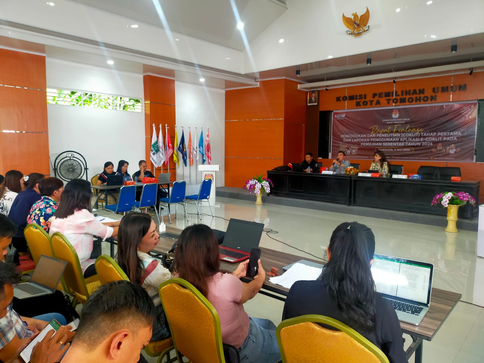 TOMOHON, inforakyatnews.com – KPU Kota Tomohon melaksanakan rapat evaluasi pencocokan dan penelitian (Coklit) tahap pertama dan laporan penggunaan aplikasi e-coklit pada pemilihan serentak 2024.