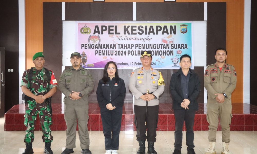 TOMOHON, inforakyatnews.com Guna menunjang pengamanan Pemilu yang akan digelar serentak tanggal 14 Februari nanti, Kepolisian Resort (Polres) Kota Tomohon bersama KPU dan Bawaslu Tomohon gelar apel...