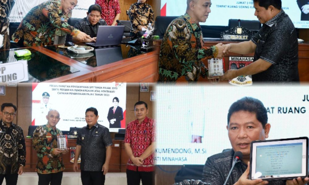 TONDANO,inforakyatnews.com-Penjabat Bupati Minahasa, Dr Jemmy Stani Kumendong MSi melakukan pengisian laporan SPT tahun pajak 2023, yang disaksikan langsung Kepala KPP Pratama Bitung, Yul Heriawan MM, Kepala...