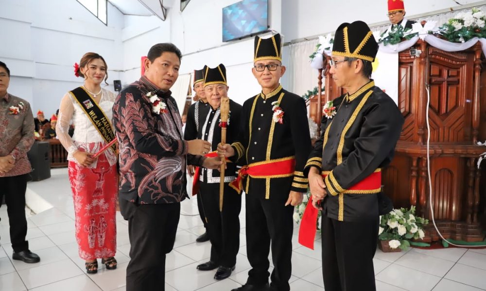 MINAHASA, inforakyatnews.com – Penjabat Bupati Minahasa Dr Jemmy S Kumendong M.Si, didampingi Ketua TP PKK Ny Kumendong Onibala SH menghadiri dan memberikan gelar adat Tountemboan Walak...