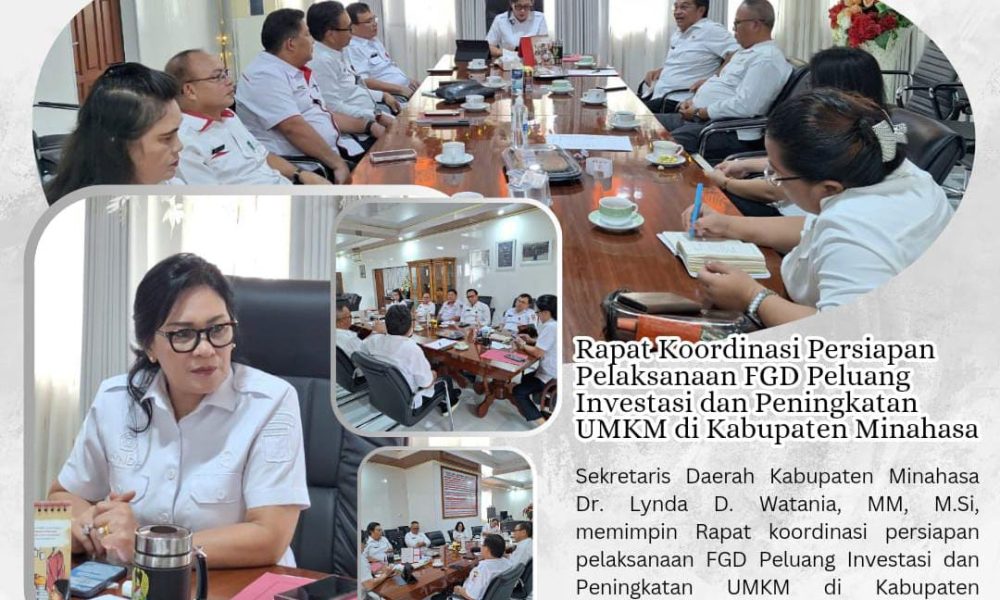 TONDANO, inforakyatnews. com – Sekretaris Daerah (Sekda) Kabupaten Minahasa Dr. Lynda D. Watania, MM, M. Si, memimpin rapat koordinasi (rakor) persiapan pelaksanaan FGD Peluang Investasi dan...