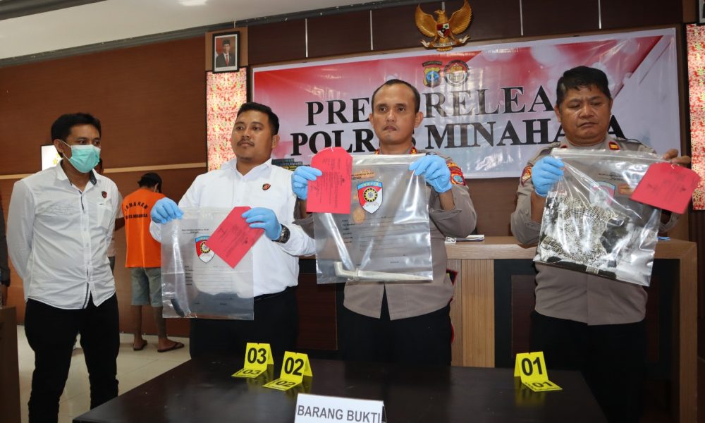 Kapolres Minahasa AKBP S. Sophian (kedua dari kanan), saat memimpin Polres Minahasa mengelar Konferensi Pers MINAHASA,inforakyatnews.com-Kepolisian Resort (Polres) Minahasa, dipimpin Kapolres Minahasa AKBP S Sophian didampingi...