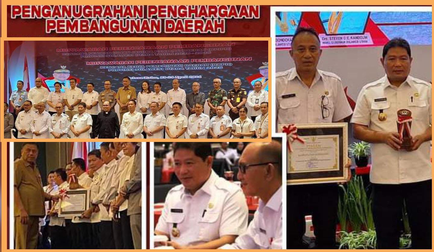 Pada kesempatan ini, Penjabat Bupati Minahasa Dr Jemmy S Kumendong MSi, yang menerima penghargaan yang diserahkan langsung oleh Gubernur Sulut Olly Dondokambey SE, disela sela Musyawarah Perencanaan Pembangunan Daerah (Musrenbang) Rencana Pembangunan Jangka Panjang Daerah (RPJPD) tahun 2025-2045 dan Musrenbang Rencana Kerja Pemerintah Daerah (RKPD) tahun 2025, Provinsi Sulut, di Manado, Rabu (25/04/24).