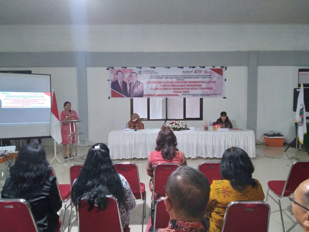 TOMOHON, inforakyatnews.com – Sosialisasi Peraturan Menteri Pendayagunaan Aparatur Negara dan Reformasi Birokrasi RI Nomor 7 Tahun 2022, tentang sistem kerja pada instansi pemerintah untuk penyederhanaan birokrasi di lingkungan pemerintah Kota Tomohon tahun 2023.
