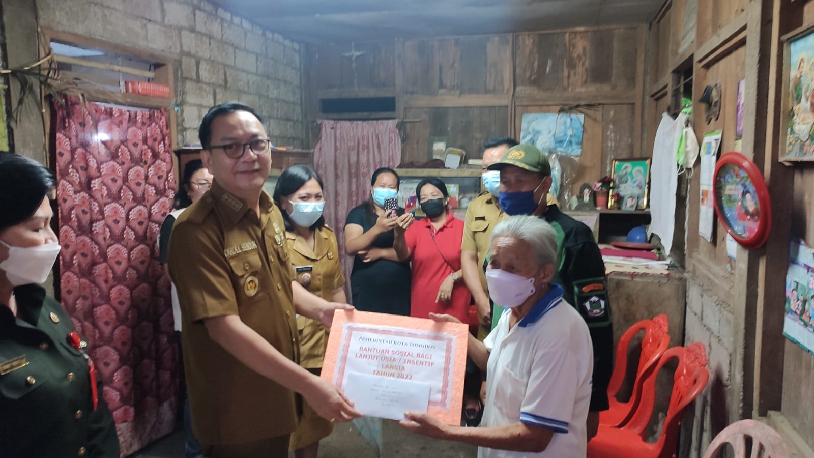 Walikota Tomohon Caroll Joram Azarias Senduk, SH menyerahkan bantuan sosial secara langsung berupa uang tunai untuk lanjut usia (Lansia) di Kota Tomohon, Selasa 10 Mei 2022.