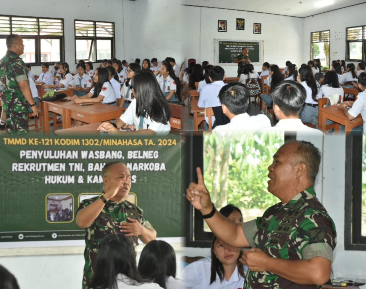 MINAHASA, inforakyatnews.com – Kapten Inf Juris Sahese yang tugas kesehariannya adalah Perwira Seksi Bindang Bakti Korem 131/Stg, sekalius sebagai Satgas TMMD ke-121 TA 2024 Kodim 1302/Minahasa Korem 131/Santiago Kodam XIII/Merdeka, memberikan sosialisasi hukum sekaligus sosialisasi wawasan kebangsaan yang merupakan program non fisik TMMD kepada Siswa-siswi SMA Negeri Negeri 1 Kakas, Kabupaten Minahasa, Provinsi Sulawesi Utara, Selasa (30/7/2024).