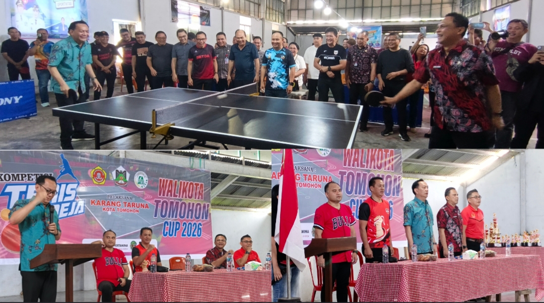 Tomohon, inforakyatnews.com/ – Kompetisi Tenis Meja Walikota Tomohon Cup 2026 resmi dibuka oleh Walikota Tomohon, Caroll Senduk, Jumat (6/3/2026). Ajang yang diprakarsai oleh Karang Taruna Kota Tomohon ini berlangsung di Aula Kantor Kelurahan Lansot, Kecamatan Tomohon Selatan.