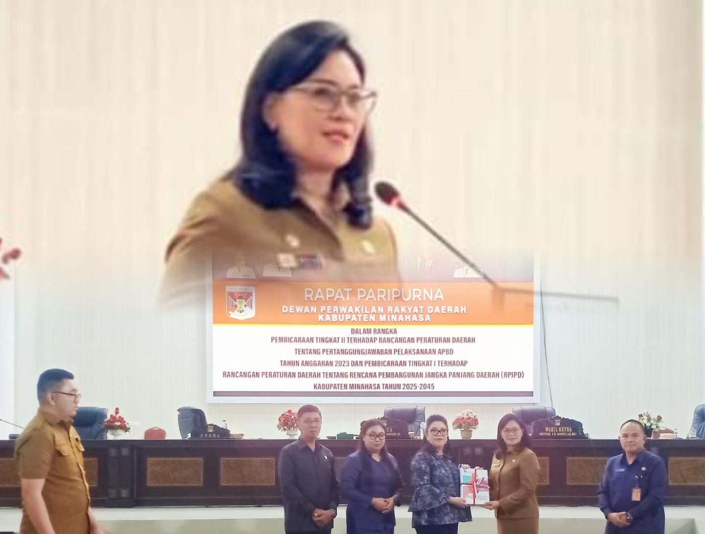 MINAHASA, inforakyatnews.com – Sekretaris Daerah kabupaten Minahasa Dr. Lynda D. Watania MM, M,Si, menghadiri Rapat Paripurna Dalam Rangka Pembicaraan Tingkat II Terhadap Rancangan Peraturan Daerah Tentang Pertanggungjawaban Pelaksanaan APBD Tahun Anggaran 2023 Dan Pembicaraan Tingkat I Terhadap Rancangan Peraturan Daerah Tentang Rencana Pembangunan Jangka Panjang (RPJPD) Kabupaten Minahasa Tahun 2025-2045 bertempat di ruang sidang kantor DPRD Kabupaten Minahasa, Senin (5/8/2024).