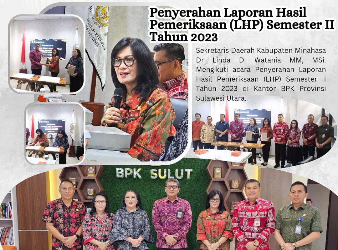 MINAHASA,inforakyatnews.com-Wakili Bupati Minahasa Sekertaris daerah Minahasa Dr. Lynda Wantania, MM, M. Si,Menghadiri Acara Penyerahan Laporan Hasil Pemeriksaan (LHP) Kinerja Semester II dari Badan Pemeriksa Keuangan (BPK) RI Perwakilan Provinsi Sulawesi Utara. Bertempat di Kantor BPK Perwakilan Sulut, kamis (11/1/2023).