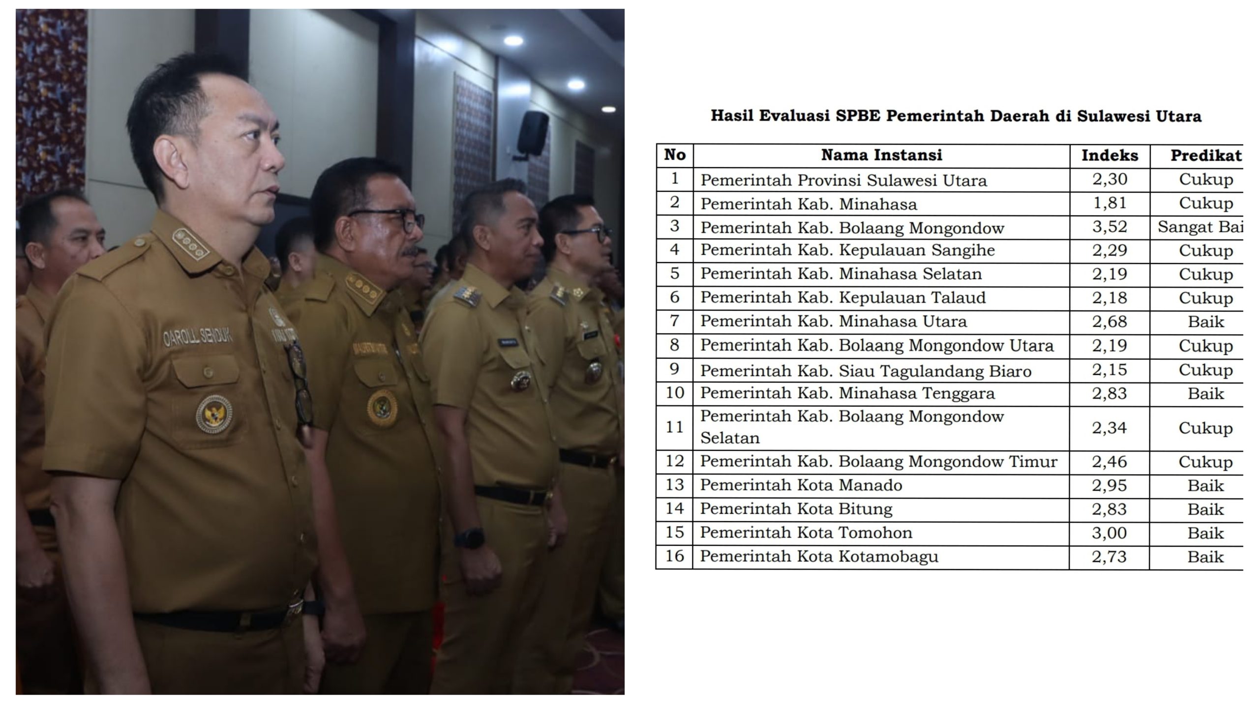 “Dengan hasil evaluasi SPBE tahun 2023 dimana untuk level Provinsi Sulut. Kota Tomohon sukses meningkatkan kinerja Tata Kelola SPBE dgn capaian Indeks Nilai 3,00 kategori BAIK dan menjadi kedua terbaik di Provinsi Sulut setelah Kabupaten Bolmong,” ucapnya.