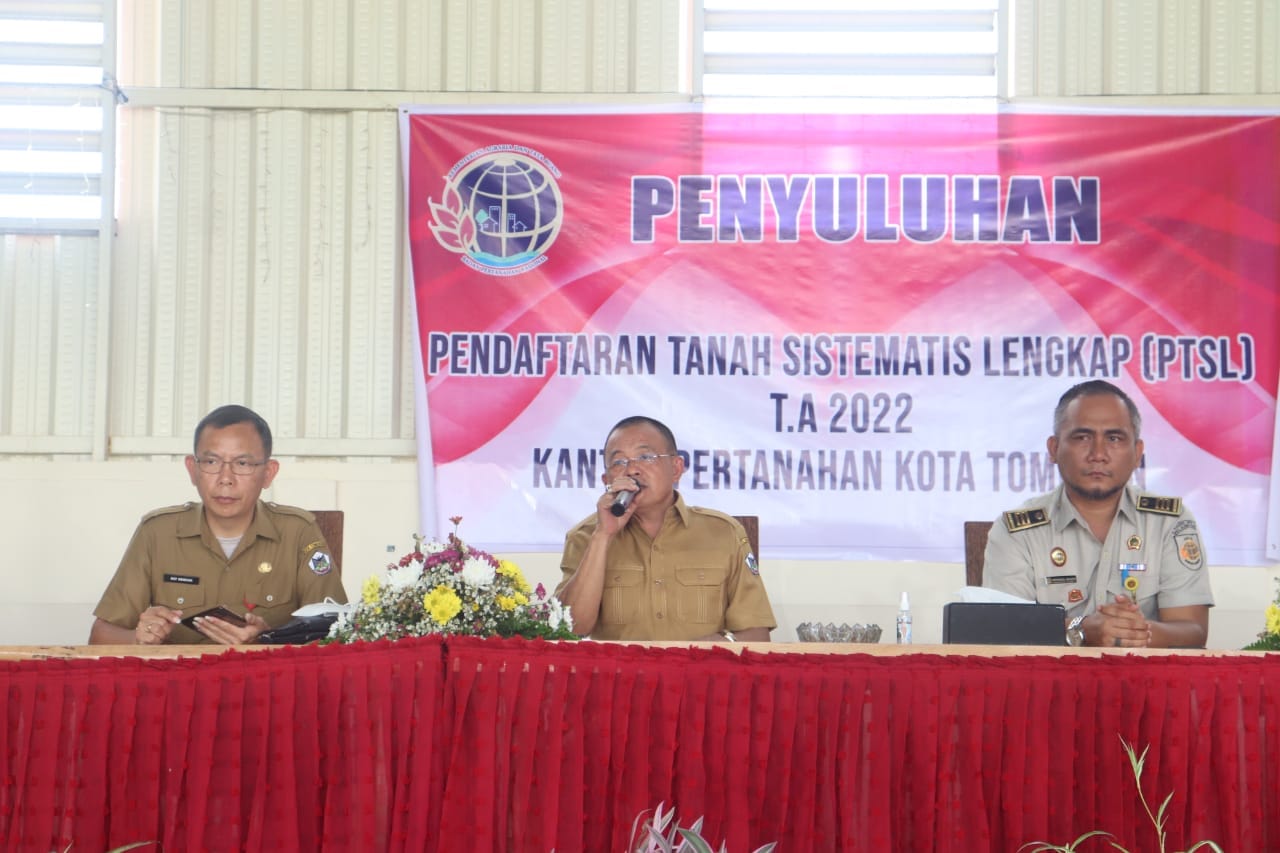 TOMOHON, inforakyatNews.com – Kasus sengketa tanah dan sengketa lahan masih sering kita temui sampai dengan saat ini. Ini terjadi karena masih banyak tanah yang belum memiliki sertifikat kepemilikan yang sah. sehingga pemerintah melalui Kementerian ATR/BPN menyelenggarakan salah satu program prioritas nasional berupa percepatan Pendaftaran Tanah Sistematis Lengkap (PTSL) yang serentak dilaksanakan di seluruh Indonesia.