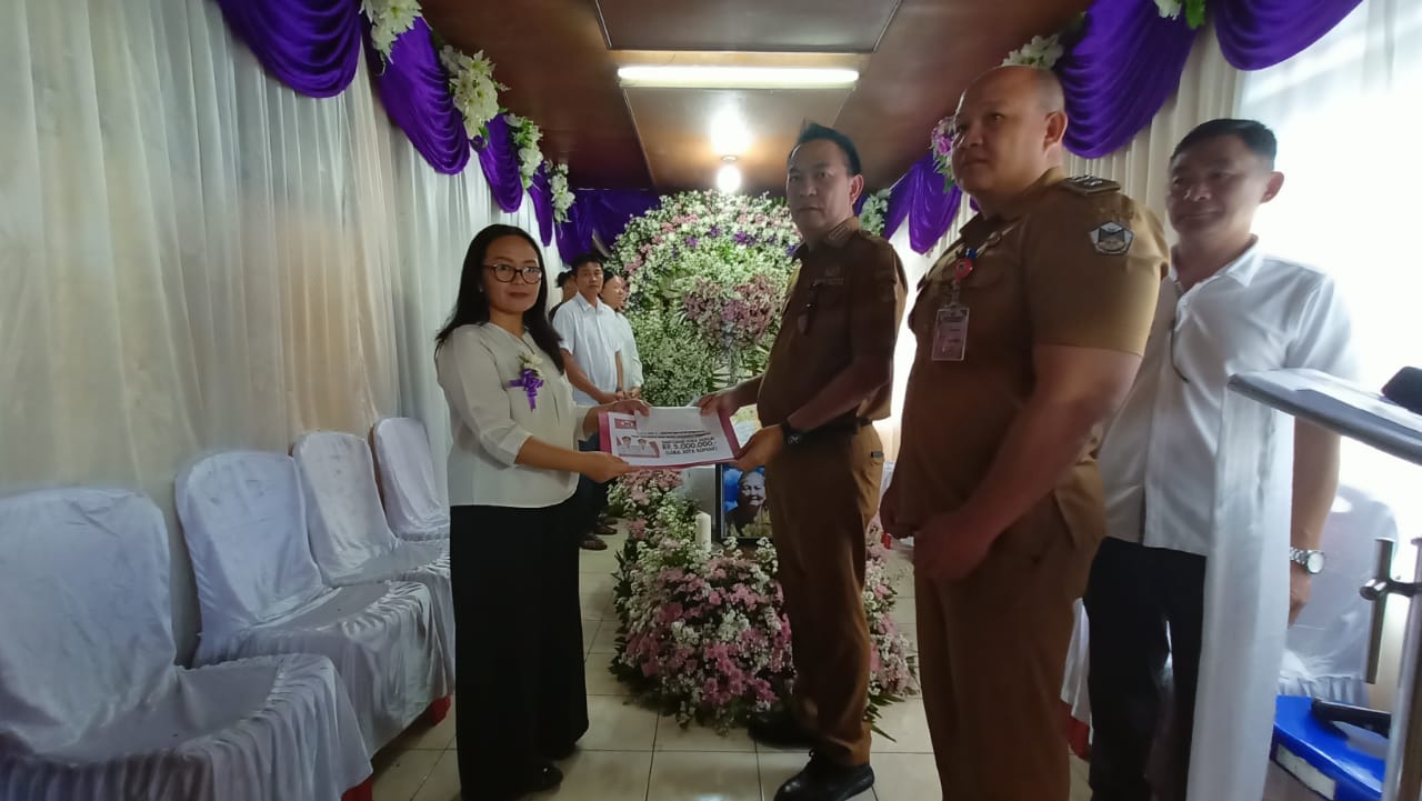 Pada kesempatan itu, Walikota menyerahkan bantuan Pemerintah Kota Tomohon sebesar Rp 5.000.000, dan dokumen kependudukan yang baru kepada keluarga berduka.