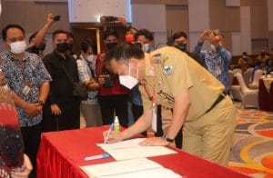 Walikota Tomohon turut menandatangani berita acara Musrenbang RKPD Provinsi Sulawesi Utara tahun 2023.